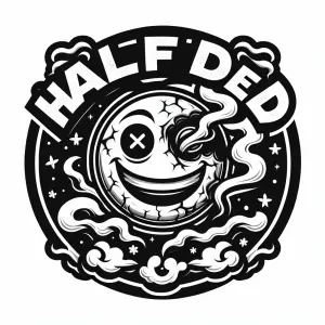 «Design a circular logo for the brand "Half Dead Boyz" showcasing...»