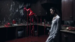 «need a realistic photo in which a woman in a white sleep dress a...»