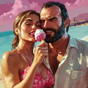 «Elon Musk,Eating ice-cream with woman., GTA style»