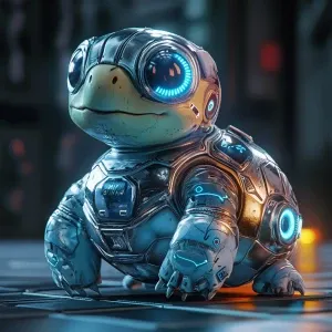 «cute turtle, cyberpunk style, raytraced»