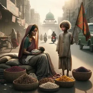 «Heartwarming cinematic 3D scene of Farmer Ramayya placing extra...»