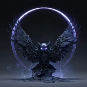 «A sleek, futuristic emblem of a mechanical owl gliding through a...»
