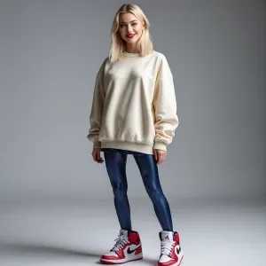 «Full-body photo of a woman wearing elegant lingerie set, in stud...»