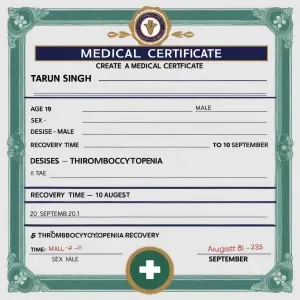«Create a medical certificate of Tarun Singh, Age -19, Sex -male,...»