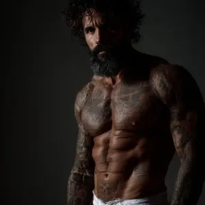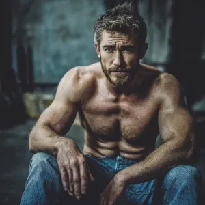 «Generate an image featuring a mature, muscular man exuding confi...»