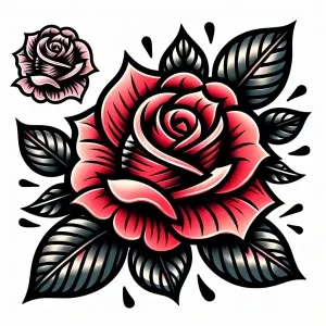 «A colorful tattoo-inspired rose, its petals outlined in bold bla...»