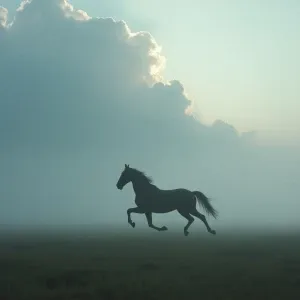 «A ghostly horse materializes from the billowing clouds overhead,...»