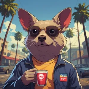 «Sloths slerf meme,eat a burger, GTA style art»