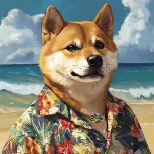 «DOGE meme.,On beach in a Hawaii shirt, GTA style art»
