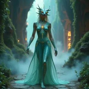 «A highly realistic, fantasy-themed image of Dahlia Valentina as...»
