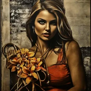 «girl with brown hair, thick eyebrows, pumped up lips, potato nos...»