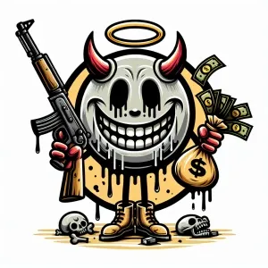 «Create a circular cartoonish logo with a demon. dressed in a o...»