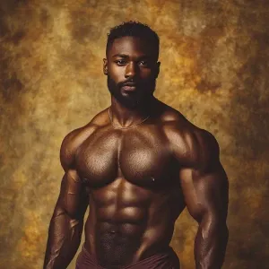 «Create an image of a hairy chest African American man showcasing...»