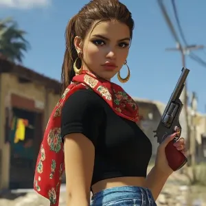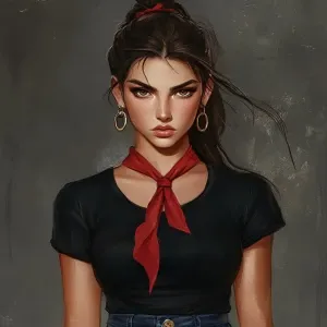 «“A striking, full-body image of Dahlia Valentina standing confid...»
