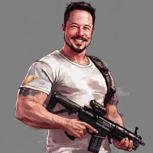 «White muscular thin man with beard, big chin, smile and cheekbon...»