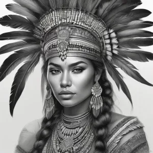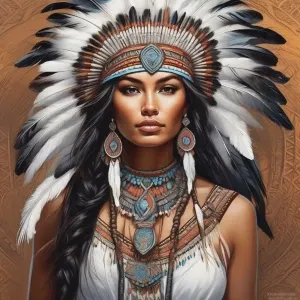 «Majestic and serene scene featuring a Native-inspired woman ador...»