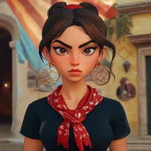 «girl with brown hair, thick eyebrows, pumped up lips, potato nos...»