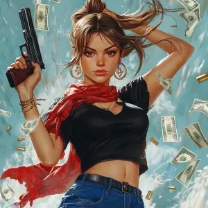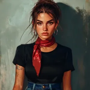 «girl with brown hair, thick eyebrows, pumped up lips, potato nos...»