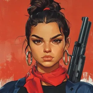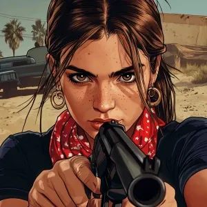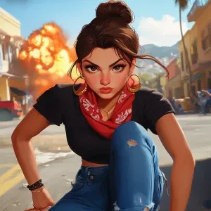 «Lucia from GTA, girl with brown hair, thick eyebrows, pumped up...»