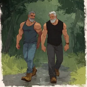 «Generate an image of two men bodybuilders in Derby walking in th...»