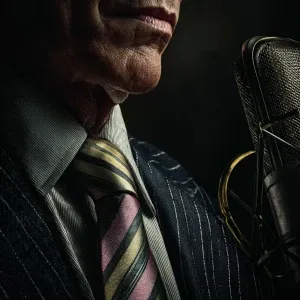 «Generate a photo of a sophisticated, man Include a microphone i...»