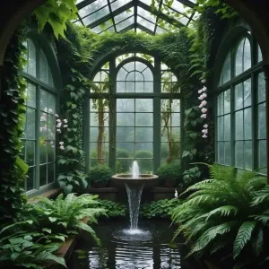 «Vine-Curtained Conservatory: A verdant sanctuary where walls the...»