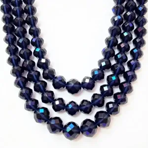 «Design a triple-strand necklace with graduated navy blue faceted...»