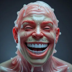 «Bizarre gelatinous smile now cry later mask, gelatinous electr...»