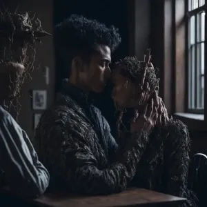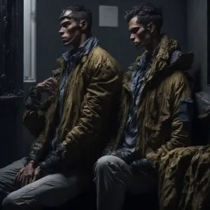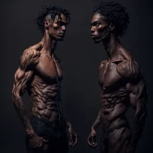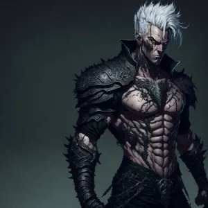 «Strong man, athletic body, white hair, scar on nose, demonic tat...»
