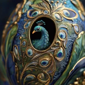 «Create an image of an exquisitely crafted Faberge egg, featuring...»