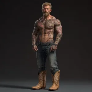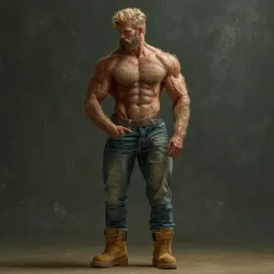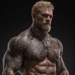 «Generate an image of a strong male bodybuilder with blonde hair...»