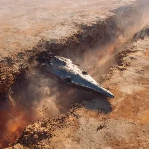 «Illustrate the dramatic aftermath of a high-velocity, low-angle...»