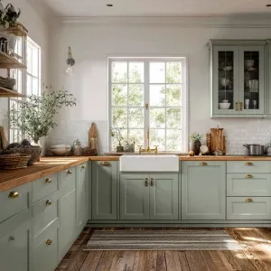 «Generate a realistic image of a farmhouse kitchen showcasing sag...»