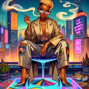 «Design a 300 DPI glossy cartoon-style oil painting of a confiden...»