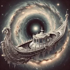 «In the center of a cosmic void sits a majestic galactic gondola,...»