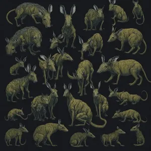 «Aardvark whale armadillo butterfly green frog dolphin seahorse a...»