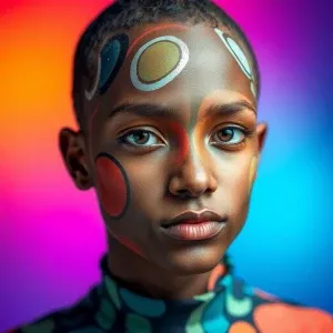 «Portrait of a person with abstract patterns painted on their fac...»