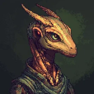 «A finely crafted 2D pixel art portrait of an alien hybrid with a...»