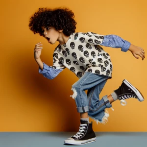 «2D cinematic illustration of Pinkie Floyd in an elegant cream co...»