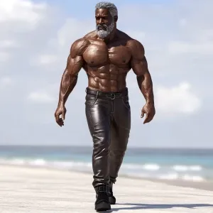 «African-American Muscle bodybuilder dark hair beard hairy chest...»