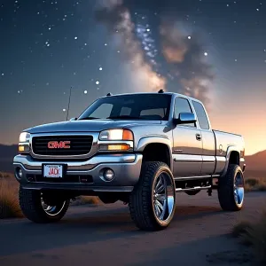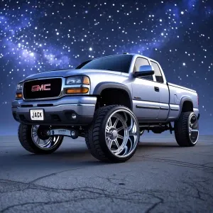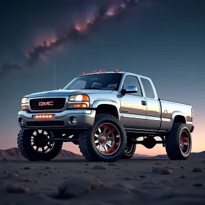 «an intricately designed and ornamental silver 2002 GMC extende...»