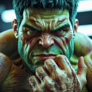 «Imagen: A close-up photo of Hulks face, rendered in a realistic...»