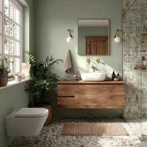 «Create a realistic image of a compact spa-like bathroom featurin...»