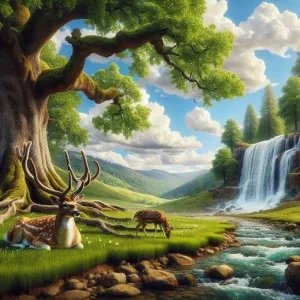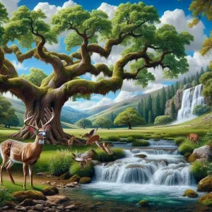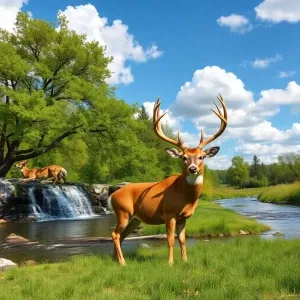 «Under a pristine blue sky speckled with white, fluffy clouds, a...»