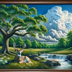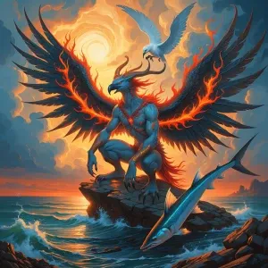 «Imaginative, fantastical painting featuring a mythical creature...»