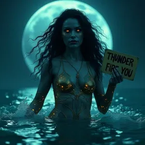 «"In the moonlit ocean, evil Mami Wata emerges, her skin shimmer...»