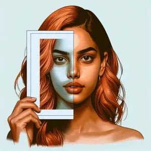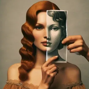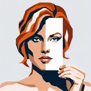 «Create a portrait of a woman with ginger hair in an abstract sty...»