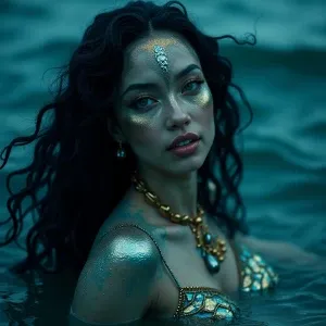 «"In the moonlit ocean, Mami Wata emerges, her skin shimmering wi...»