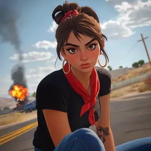 «Lucia from GTA, girl with brown hair, thick eyebrows, pumped up...»