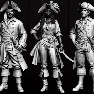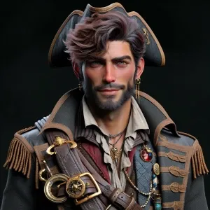 «Create a 3D character of a handsome pirate, featuring chiseled f...»